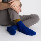Possum Merino Wool Socks | DUNEDIN | Royal Blue + Ecru Olive | Men